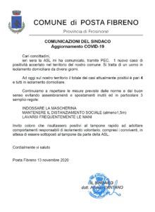 AGGIORNAMENTI COVID-19 – COMUNICAZIONE DEL SINDACO DEL 13.11.2020