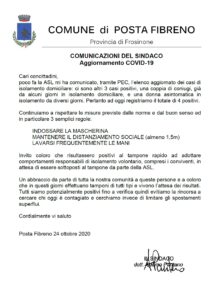 AGGIORNAMENTI COVID-19 – COMUNICAZIONE DEL SINDACO DEL 24.10.2020