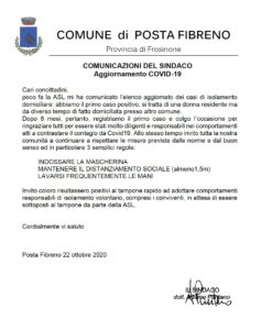 AGGIORNAMENTI COVID-19 – COMUNICAZIONE DEL SINDACO DEL 24.10.2020