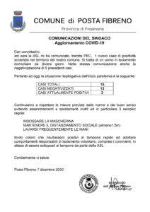 AGGIORNAMENTO CONTAGI DA COVID-19 – COMUNICAZIONE DEL SINDACO DEL 07.12.2020