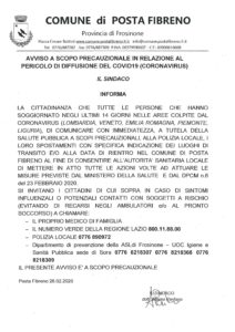 Avviso Precauzionale in Relazione al pericolo di diffusione del Coronavirus Febbraio 26, 2020 admin AVVISO COVID19 (Coronavirus)