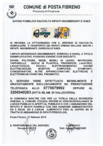 Avviso pubblico: Raccolta Rifiuti Ingombranti e RAEE Febbraio 27, 2019Febbraio 27, 2019 admin RACCOLTA RIFIUTI INGOMBRANTI E RAEE