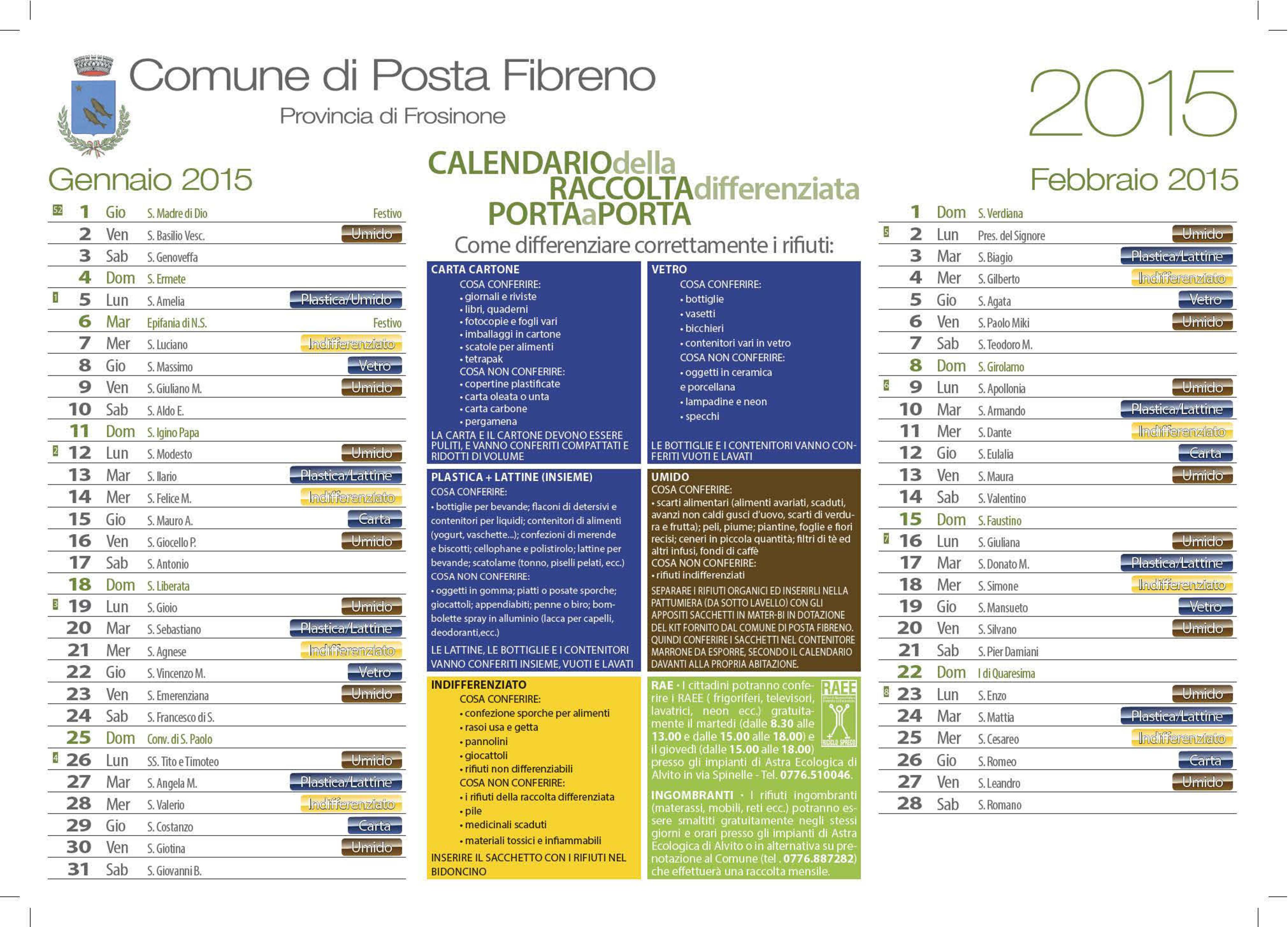 Calendario 2015 per la raccolta differenziata