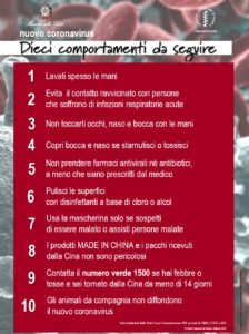 Decalogo per la prevenzione del Coronavirus Febbraio 24, 2020 admin A seguire un opuscolo più dettagliato con tutte le norme da seguire: Opuscolo informativo Dettagliato