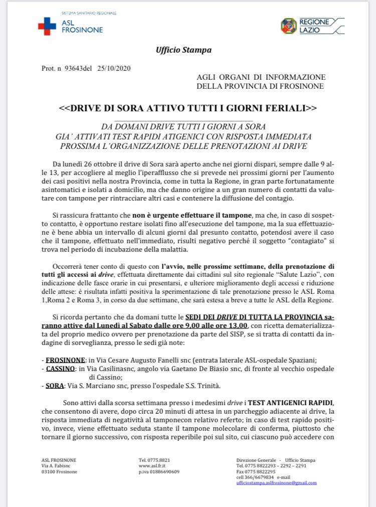 DRIVE per Test Rapidi Antigenici con risposta immediata Ottobre 26, 2020 admin Di seguito sono riportate tutte le informazioni a riguardo