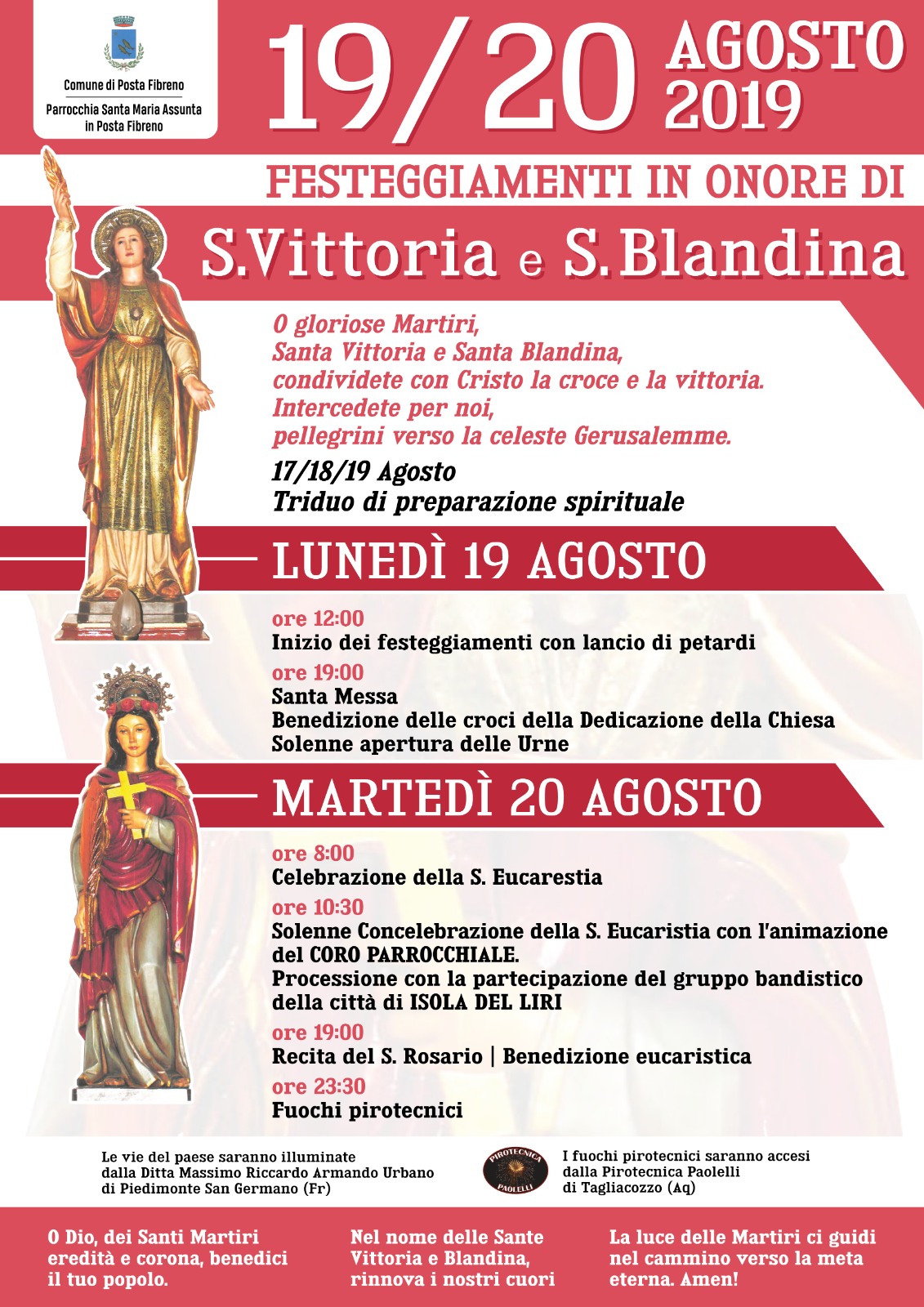 Festeggiamenti in onore di Santa Vittoria e Santa Blandina! – 19 e 20 Agosto 2019