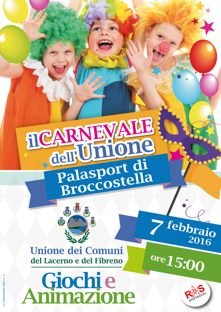 L’Unione dei Comuni del Lacerno e del Fibreno ha organizzato una manifestazione per festeggiare il Carnevale, domenica 7 febbraio 2016 dalle ore 15.00 presso il Palasport di Broccostella. Ad intrattenere il pubblico cisaranno giochi e animazioni.