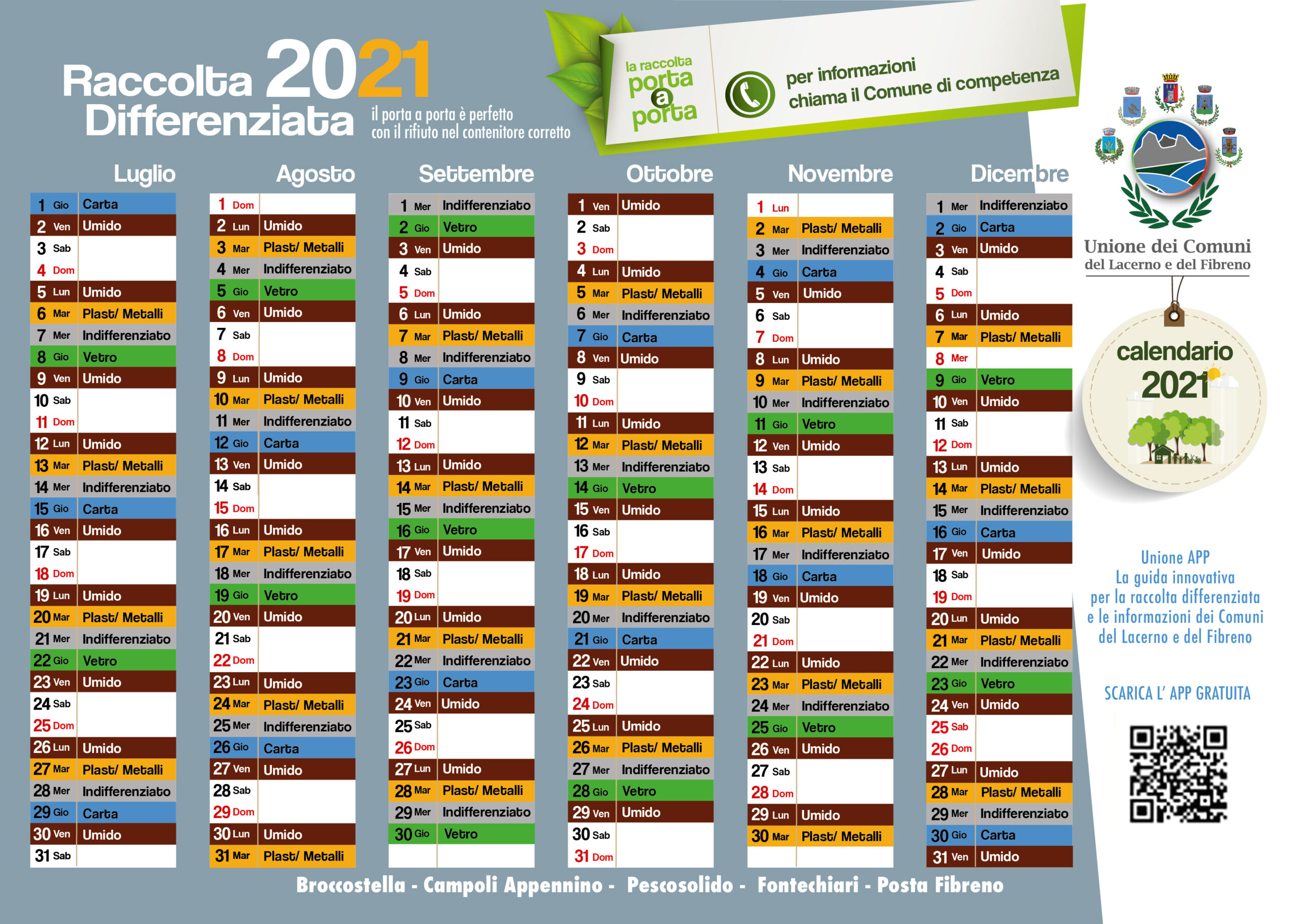 NUOVO CALENDARIO RACCOLTA DIFFERENZIATA – ANNO 2021