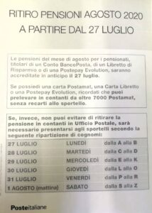 Orari e date per il ritiro della pensione del mese di Agosto 2020