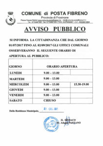Orario estivo uffici comunali