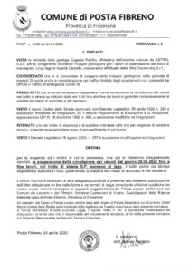 ORDINANZA N.5 DEL 24.04.2020 – SOSPENSIONE DELLA CIRCOLAZIONE DEI VEICOLI NEL TRATTO DI STRADA S.P. ACCESSO AL LAGO MARTEDI’ 28 APRILE 2020.