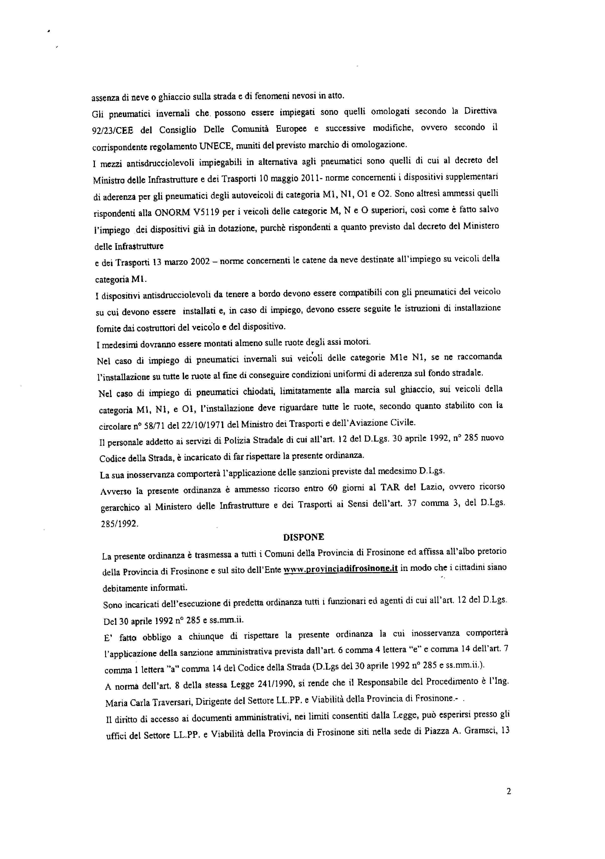 Prescrizione di circolazione con speciali pneumatici da neve o con catene a bordo dei veicoli transitanti Ie Strade Provinciali dal 15 novembre 2014 al 15 aprile 2015.