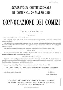 Referendum Costituzionale di Domenica 29 Marzo 2020 – Convocazione Comizi Elettorali Febbraio 13, 2020 admin Manifesto convocazione dei comizi Referendum Costituzionale di domenica 29 Marzo 2020