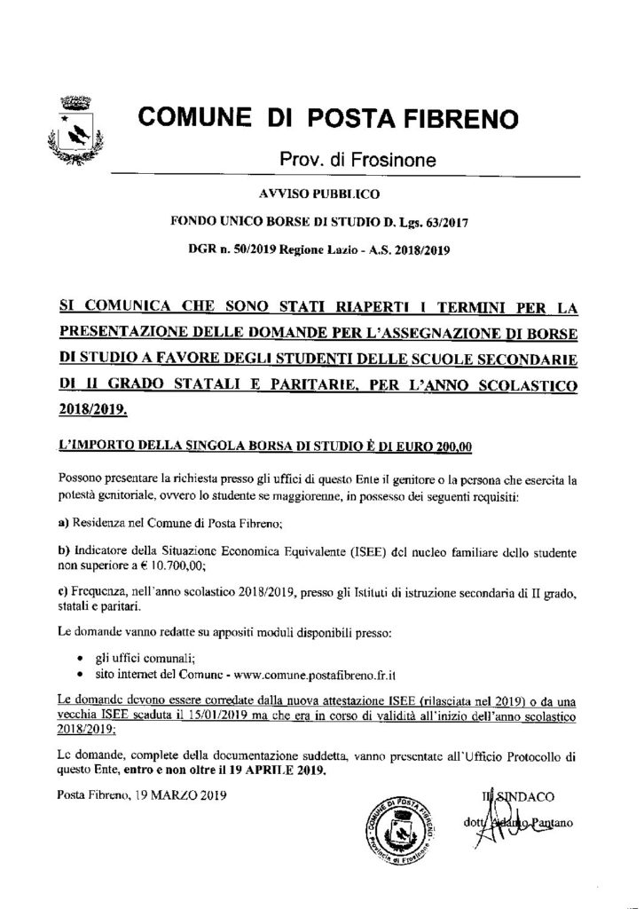Riapertura termini domande Borse di Studio