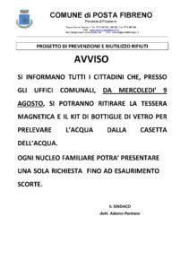 Ritiro tessera magnetica e kit bottiglie di vetro per prelievo acqua dalla casetta dell’acqua Agosto 4, 2017 admin