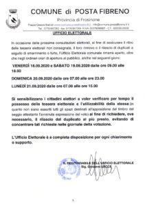 CHIUSURA UFFICIO POSTALE DI POSTA FIBRENO DA LUNEDI’ 21 A MERCOLEDI’ 23 SETTEMBRE 2020