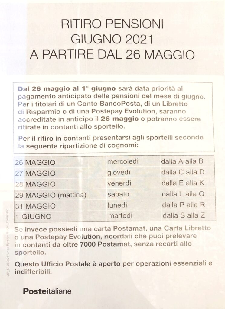 Ufficio Postale di Posta Fibreno – Ritiro pensioni di Giugno a partire dal 26 Maggio